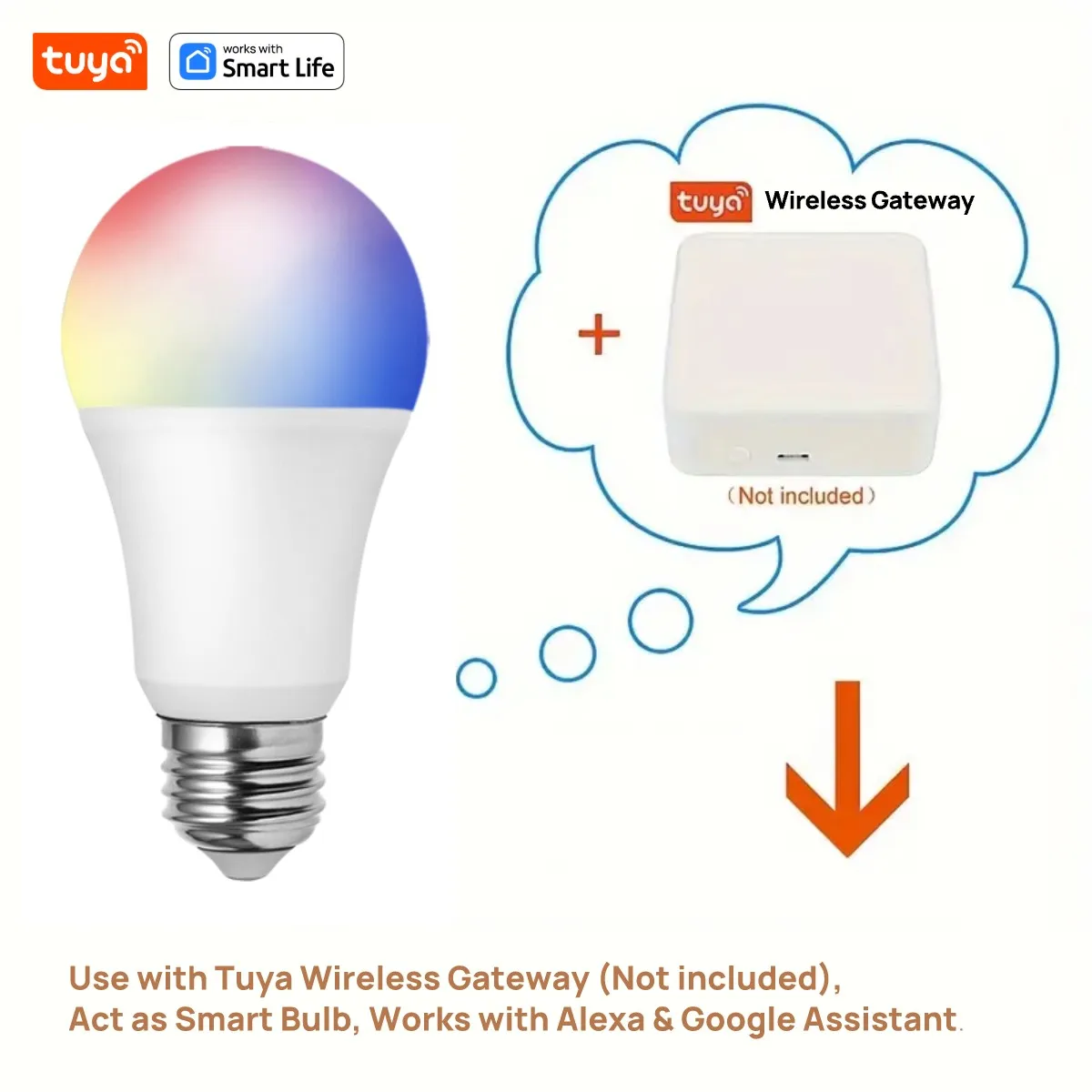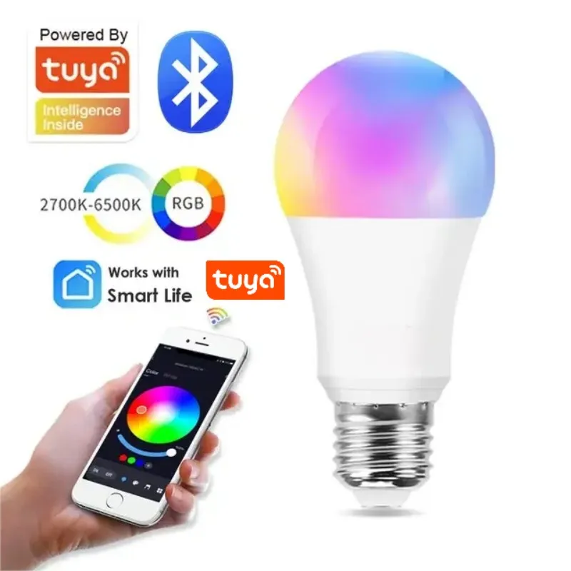 Tuya E27 Smart Light Bulb, 9W 220-240V, RGBW LED Color Changing Bulbs, Tuya Smart&Smart Life APP Control,APP Dimmable Music Sync